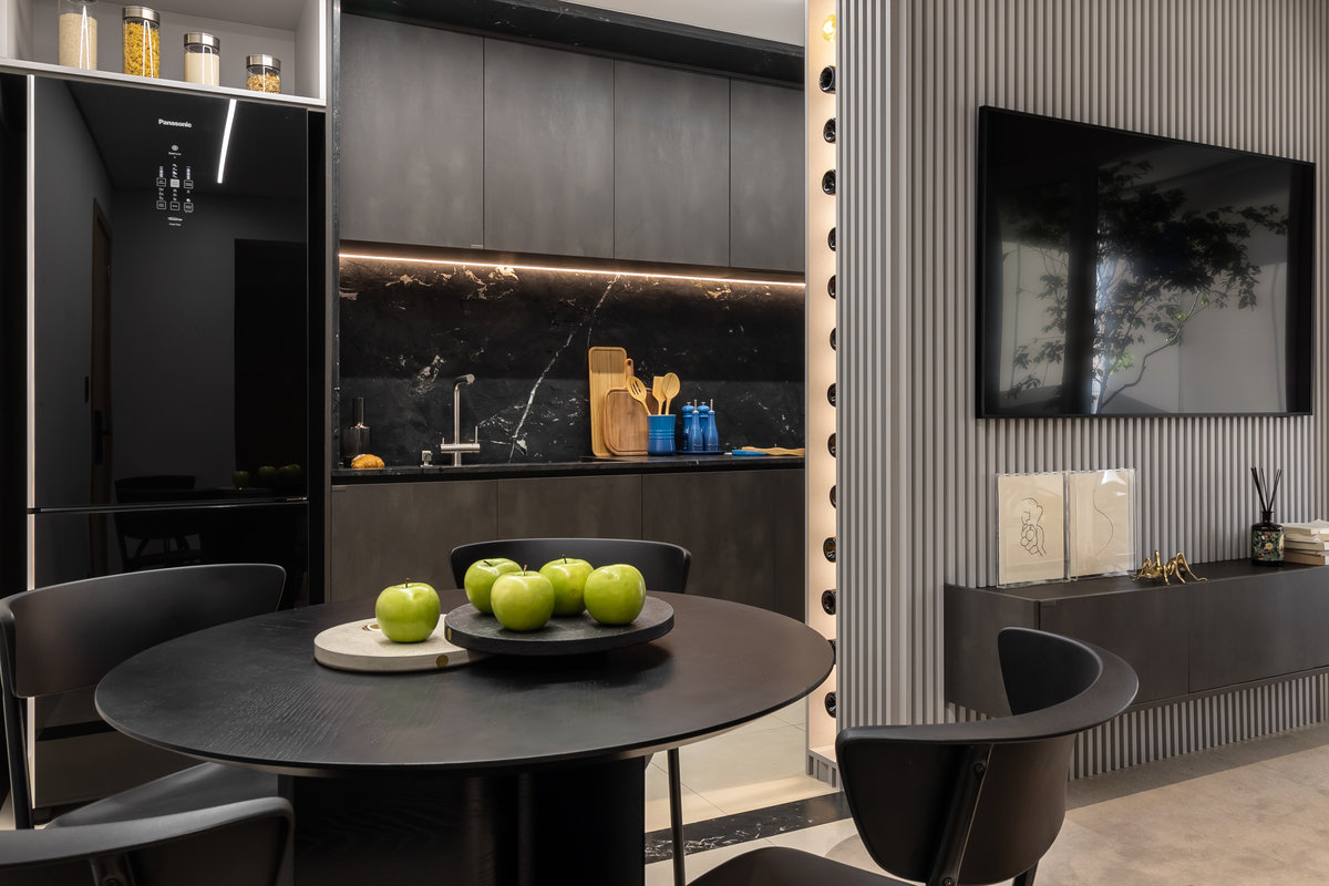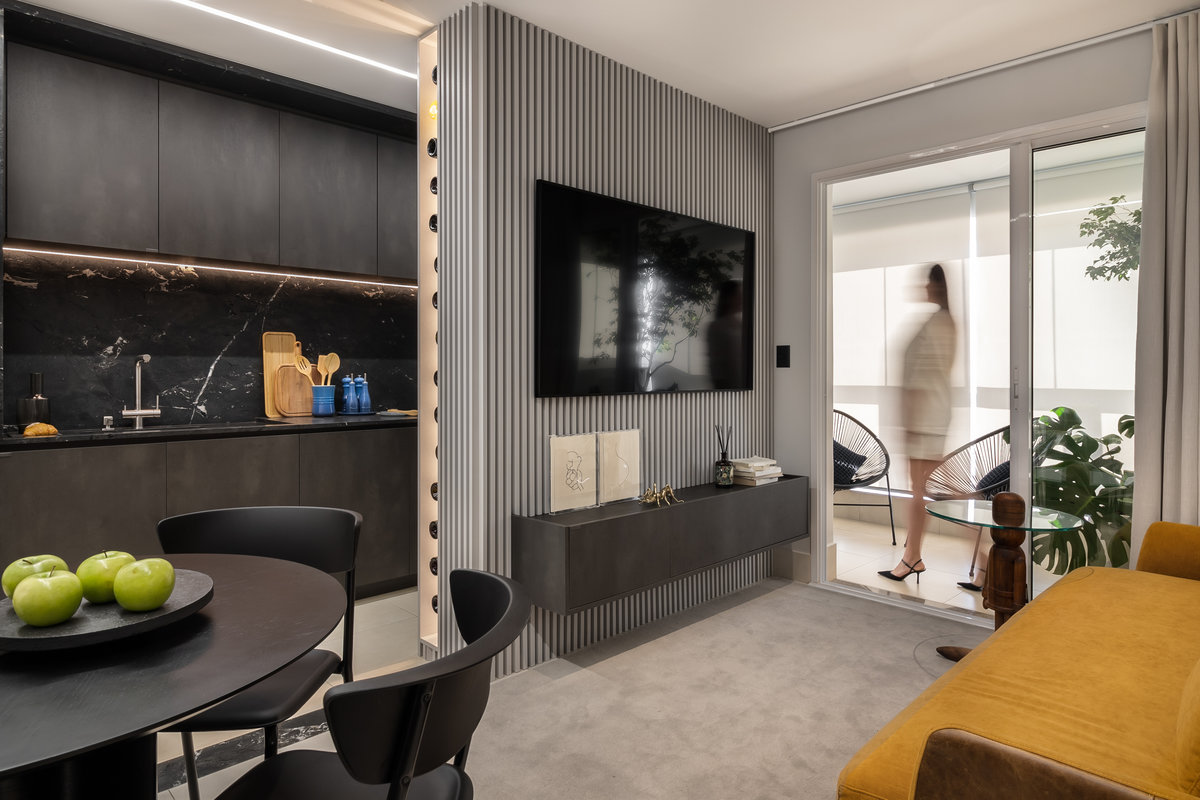apartamento “ac” projetado para um jovem solteiro que valoriza bom design e momentos de qualidade em casa, este apartamento de 61m² foi pensado para otimizar cada espaço. o desafio foi integrar funcionalidade e estética, garantindo o máximo aproveitamento da marcenaria planejada sem abrir mão da beleza.